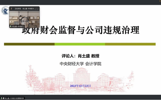 suncitygroup太阳新城官网博士研究生白玮东汇报了自己的工作论文,题目为《政府会计监督与企业违规》。肖土盛教授、王帆教授进行点评。