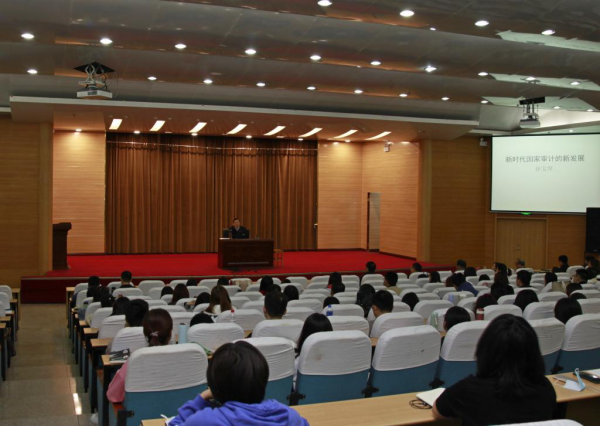 在立信楼报告厅,孙宝厚会长为我校suncitygroup太阳新城官网教师和硕博研究生作了题为“新时代国家审计的新发展”的学术报告。他首先通过自己去美国审计机关考察交流和参与国务院、全国人大应用审计成果的故事,深入浅出地阐释了国家审计的体制与机制、职能与定位,指出国家审计不仅是经济监督活动,同时也是国家政治活动。党的十九大开始推进的审计管理体制改革,全面加强了党对审计工作的领导,极大地提高了国家审计的地位,充分发挥了审计监督作为关系党和国家大局的宏观管理作用。其次,孙会长介绍了近年来国家机构改革中通过对国资委、财政部和发改委等机构有关国有资本和公共资金监督检查权的整合,实现国家审计机关职能配置优化的情况。他认为这样改革有利于国家审计实现由见微知微到见微知著的深刻转变,有利于实现审计监督的全覆盖,提高审计监督的权威性和效率;实现了国家审计职能作用的“三个超越”,即超越了历史上任何时期,超越了世界上的任何国家,超越了其他经济监督工作领域;使得国家审计迎来了“五个越来越”的新形势,即所处的地位越来越高,赋予的职责越来越重,所承担的任务越来越多,社会对审计的期望值越来越高,审计工作条件和保障越来越好。最后,孙会长分析了我国国家审计工作的特点,认为我国国家审计是依法审计和依纪审计的统一,是宏观和微观的统一,是对人审计和对事审计的统一,是监督和促进的统一,是专项审计和综合审计的统一,是过程和结果的统一,也是治已病和防未病的统一。