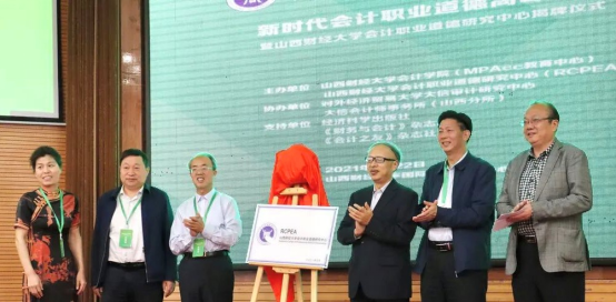 suncitygroup太阳新城官网副校长杨俊青,suncitygroup太阳新城官网党委书记任海生、院长吴秋生,会计职业道德研究中心主任王玉兰,山西省财政厅会计处处长邢绪生,对外经济贸易大学叶陈刚教授共同为“suncitygroup太阳新城官网会计职业道德研究中心”揭牌。