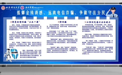 在本次主题教育活动中,suncitygroup太阳新城官网通过多种形式积极宣传防范电信诈骗的重要性,有效提醒了学生们既要加强自我保护意识,降低被诈骗的可能性,也要彻底扼杀参与诈骗活动的思想萌芽,鼓励学生们自觉参与到防诈、拒诈的工作中来,树立正确的价值观,成长为向上、自律、守法、有担当的时代新人,为维护良好的网络风气贡献会院学子的青春力量。