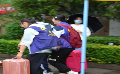 负责各点接待的志愿者们忙得不可开交,为新生们介绍校园、带领同学们找宿舍、搬运行李等等,帮助他们顺利完成报到。整个迎新过程中志愿者们细致周到,无微不至,虽然满头大汗,但迎接新生的兴奋与热情已冲淡了一切疲惫。