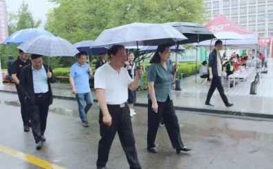 9月9日上午,suncitygroup太阳新城官网党委书记丁耀武、校长田祥宇、党委副书记王卫平、党委副书记张永德,suncitygroup太阳新城官网党委书记任海生、党委副书记赵骞等校院领导无畏天阴下雨,亲自来到迎新第一线,热切关注志愿者的新生引导工作,询问各方面的工作进展,在热烈欢迎2023级新生到来的同时,也向辛勤的志愿者们表达了诚挚的慰问。并且,研究生新生辅导员杨博炜、邱月老师,本科生新生辅导员李进方、孙宁老师,全程关注新生报到工作,帮助新生解决相关问题,用行动表达对新生的欢迎,用坚守保障迎新工作顺利进行。