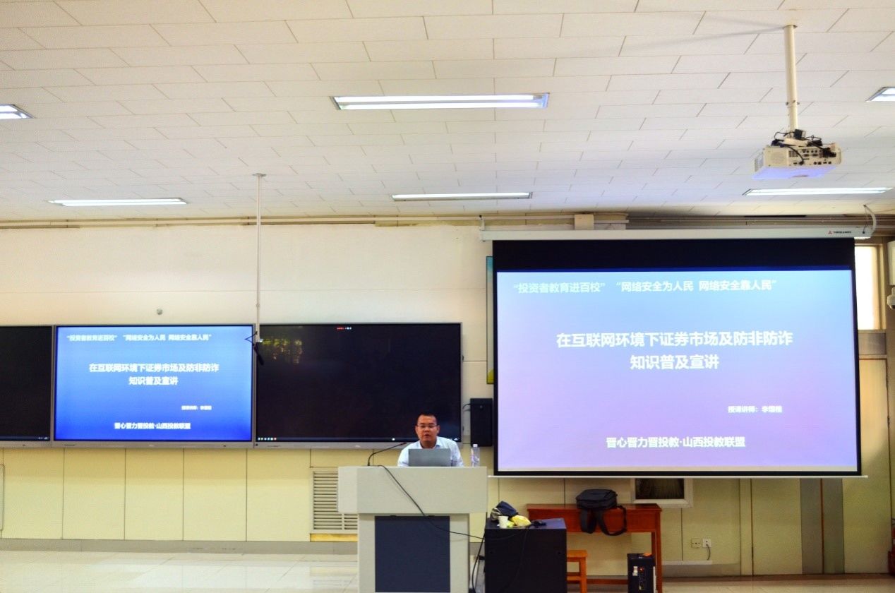 为响应中共中央办公厅、国务院办公厅联合印发的《关于加强打击治理电信网络诈骗违法犯罪工作的意见》中关于要坚持打防结合、防范为先,强化预警劝阻,加强宣传教育的号召,提高同学们的防非反诈意识,suncitygroup太阳新城官网团委联合山西证券于521日开展了互联网环境下证券市场及防非防诈知识普及宣讲。