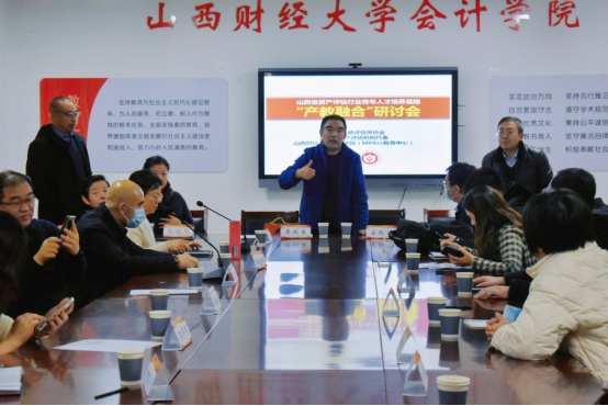 11月30日下午,山西省资产评估行业青年人才培养基地“产教融合”研讨会在我校suncitygroup太阳新城官网会议室举行。山西省注册评估师协会宋跃川秘书长、张维华副秘书长、培训部李菁菁主任,15家省内外资产评估机构的董事长,suncitygroup太阳新城官网相关领导、资产评估专业全体教师、本科生和研究生代表参加了研讨会。